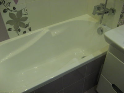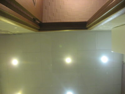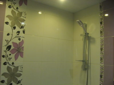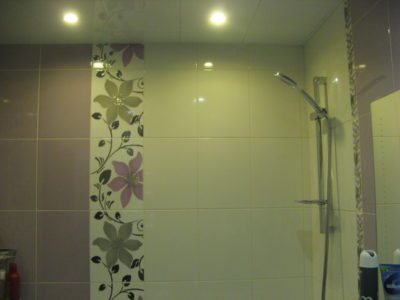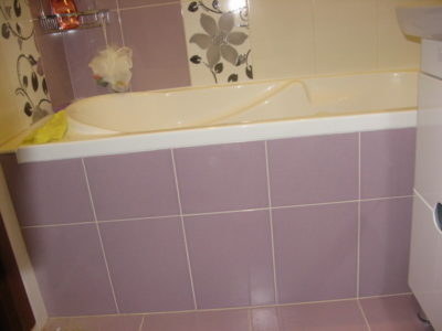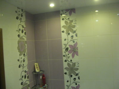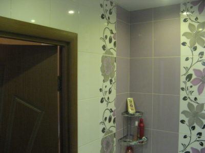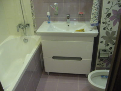 Наша компания провела комплекс работ по обновлению интерьера ванной комнаты и туалета в квартире на улице Большая Академическая. Поверхности облицованы плиткой в двух цветах (нежно-сиреневом и кремовом цветах) и украшенной роскошным цветочным принтом. Полностью был заменен дверной блок и установлен подвесной потолок со встроенными точечными светильниками. В совмещенном санузле удалось компактно разместить ванну, мойдодыр, полотенцесушитель и унитаз. Воздуховод скрыт за декоративной панелью, оформленной в тон общему интерьеру. Цена ремонта — 125500 рублей, 32 тыс. — черновые материалы.
