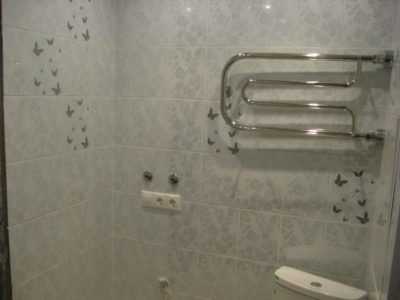 Наша компания выполнила комплексный ремонт санузла в хрущевке на улице Обручева. Для облицовки стен мы выбрали белую плитку с утонченным рисунком. В ходе проведения работ была уложена новая стяжка, смонтирован подвесной потолок и почищена система вентиляции. Вытяжное отверстие мы задекорировали решеткой. Коллектор водоснабжения разместили в боковом углу комнаты, закрыв ее распашной дверцей. В санузле установили рукомойник с тумбой, унитаз, электрический полотенцесушитель и ванну. Дополнительно смонтировали стеклянную полку и держатель для бумаги. Общая стоимость ремонта составила 98 тысяч рублей. Цена черновых материалов — 33000 р.