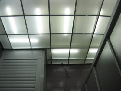 В санузле установлены ванна с защитными стеклянными шторками и гибким душем, унитаз, полотенцесушитель и стиральная машина. Потолок оформлен металлическим профилем с прозрачными панелями. Смета по ремонту составила 121 тысячу рублей. Стоимость черновых материалов — 30 тыс. 200 руб.