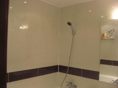 Мы выполнили ремонт совмещенного санузла на улице Коломенская по дизайн-проекту. Особенность помещения – нестандартная планировка с выступающим углом. Для комфорта жильцов мы перенесли унитаз на новое место и расположили его с правой стороны от входа, а перед ним установили стиральную машину. Центральное место комнаты перед входной дверью занимают умывальник с подвесной тумбой и большое зеркало. Вдоль глухой стены смонтирована ванна с функцией джакузи, а по бокам установлены полотенцесушитель и держатель для душа. При отделке стен использовался кафель молочного цвета. Придать интерьеру объема позволила контрастная фреза и фасады мойдодыра в темных тонах. Стоимость ремонта – 122000 рублей. Цена черновых материалов – 30 тыс. руб.
