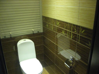 Наша компания выполнила капитальный ремонт ванной комнаты и туалета под ключ в квартире на улице Генерала Глаголева. Для отделки туалета была использована плитка коричневого и оливкового цветов. Инженерные коммуникации скрыты за жалюзи.