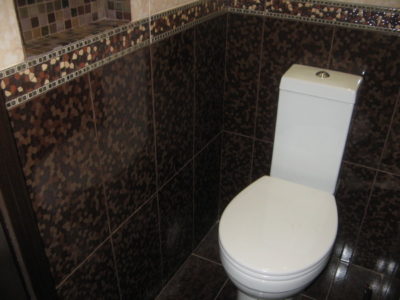 Наша компания выполнила ремонт ванной комнаты и туалета на улице Коломенская. Солидности интерьеру придают светло-бежевые и коричневые цвета, используемые при отделке поверхностей. Примечательно, что для облицовки нижней части стены и защитного экрана использовалась разноцветная мозаика. В комнате установлены ванна с гибким душем, штанга для штор, электрический полотенцесушитель и мойдодыр. В туалете смонтирован унитаз, а инженерные коммуникации замаскированы под общий интерьер. Общая смета ремонта — 125 тыс. руб. Черновые материалы — 34 тыс. р.