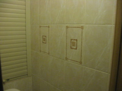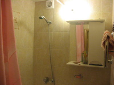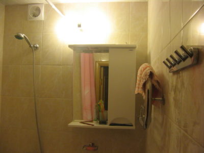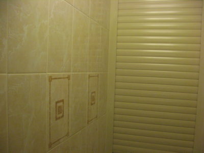 Наша компания выполнила ремонт ванной комнаты и туалета на ул. Ставропольской. Для отделки стен и пола выбрана керамическая плитка бежевого цвета. В ванной комнате установлены рукомойник с тумбой и ванна. На стене повешен шкаф, также смонтированы подставки под душ и бытовую химию. Туалет оформлен в том же стиле. Инженерные коммуникации скрыты за вертикальными жалюзи. Потолок декорирован пластиковыми панелями. Для освещения обоих помещений установлены боковые бра. Общий бюджет ремонта составил 105 тысяч рублей. Черновые материалы — 32 тыс. руб.