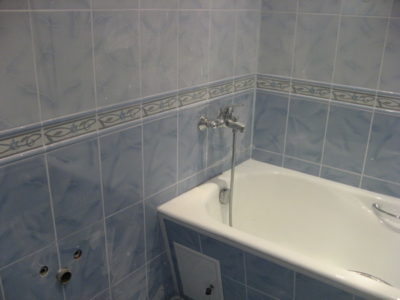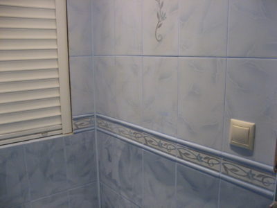 Для оформления поверхностей ванной комнаты и туалета в квартире (проезд Серебрякова) мы выбрали светло-бирюзовые оттенки. Таким образом удалось зрительно расширить пространство. Увеличению объема комнаты способствовали также установка точечных светильников на потолке. Для придания дизайну самобытности мы использовали декоративную фрезу и плитку с цветочным орнаментом. Инженерные коммуникации скрыты за защитным экраном позади нового унитаза и под ванной. Проведена новая электропроводка с выводом розеток для габаритной сантехники. Цена работы — 118 тысяч рублей. Стоимость черновых материалов — 33 тыс. р.