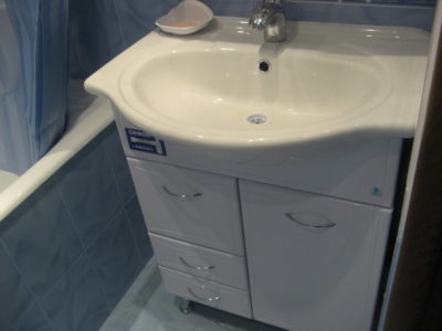 При выполнении ремонта ванной комнаты в квартире на Литовском бульваре мы сделали ставку на эргономичность. Дизайнеры учли особенности нестандартной планировки и смогли компактно расположить сантехническое оборудование с мебелью. В нише мы компактно разместили стиральную машинку и подвесной шкафчик, а на основной площади смонтировали акриловую ванну и двухсекционный мойдодыр. Чтобы визуально расширить пространство, для отделки поверхностей была использована керамическая плита небесного цвета двух оттенков. Защитный экран под ванной задекорировали в тон общему интерьера. Общая стоимость работ составила 74840 тысяч рублей. Черновые материалы — 19 тыс. 600 руб.